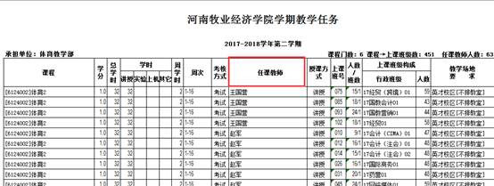 ①打印学期教学任务,添加“一列”显示任课教师工号