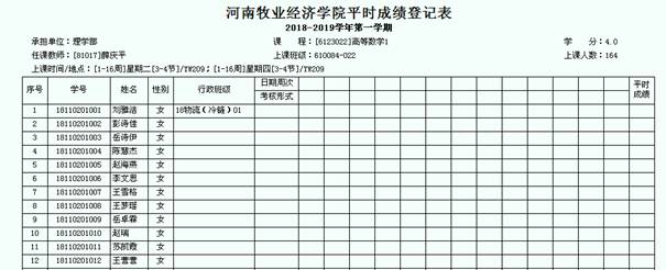 ①在WEB端打印学生平时成绩登记表,一页可以显示50个学生。